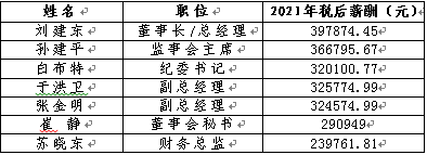 2021年集團(tuán)領(lǐng)導(dǎo)班子薪酬情況